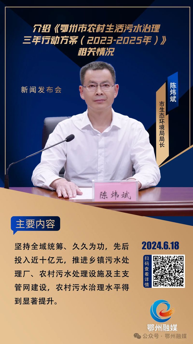 我市深入践行“绿水青山就是金山银山”理念,先后投入近十亿元,推进乡镇污水处理厂、农村污水处理设施及主支管网建设,农村污水治理水平得到显著提升。截至2023年,我市农村生活污水治理率全省排名第二,全面完成国家级和省级监管清单农村黑臭水体治理。2023年,市政府办公室印发了《鄂州市农村生活污水治理三年行动方案(2023-2025年)》(下简称《行动方案》)。