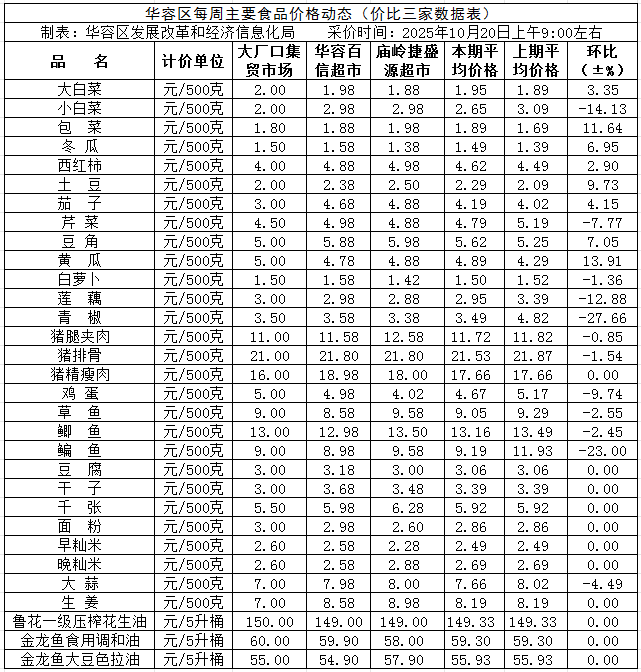 ·华容区2025年10月20日价格监测.xls