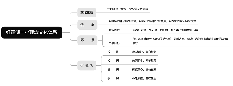 鄂州市华容区庙岭镇红莲湖第一小学的理念文化体系,是由学校使命、愿景和价值观组成的一个逻辑清晰、结构紧密的体系。