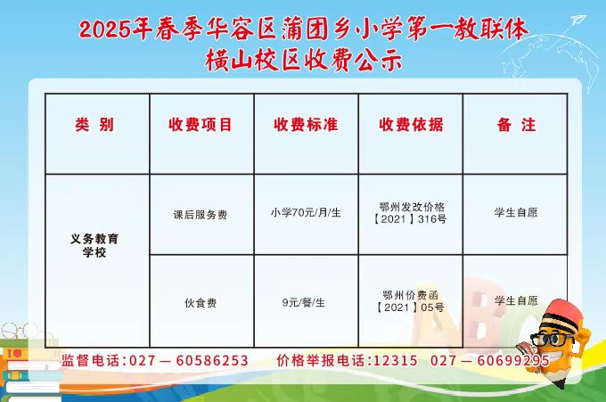 横山中心小学收费公示栏