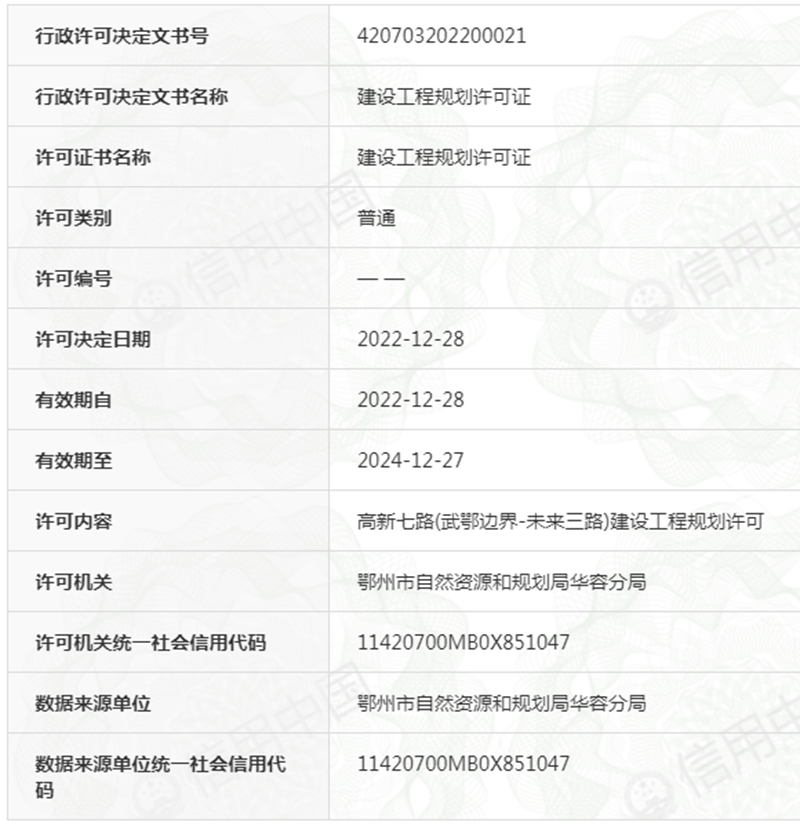 高新七路(武鄂边界——未来三路)建设用地规划许可