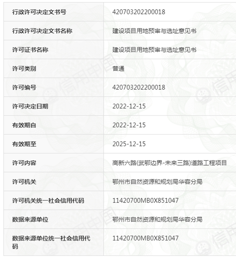 建设项目用地预审与选址意见书(高新六路(武鄂边界——未来三路))
